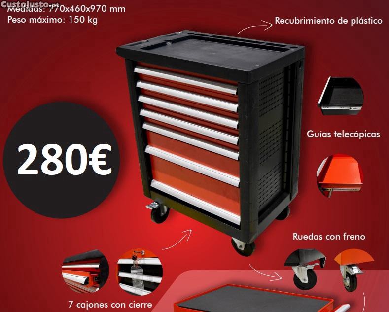 Preço: 280 €Carrinho ferramentas 7 gavetas com fecho NOVO