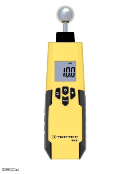 Indicador de humidade eletrônico, com o qual é possível detectar de forma simples e rápida a humidade presente na superfície de áreas contíguas de materiais diferentes. Permite a localização da distribuição de humidade em paredes, pisos ou tetos.