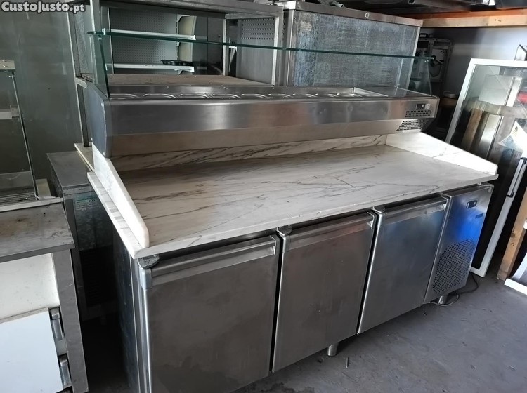 Bancada de pizza refrigerada com covetes (covetes incluídas)