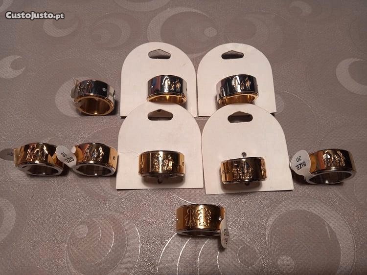 Vendo 9 anéis de aço inoxidável com número de filhos NOVOS, de vários tamanhos, de 17 a 20. Tinha valor comercial de 17.5EUR de PVP a unidade. Valor unitário de liquidação de loja a 10EUR (por motivos de fecho), caso queira adquirir todo o lote fica por 53EUR para desocupar!