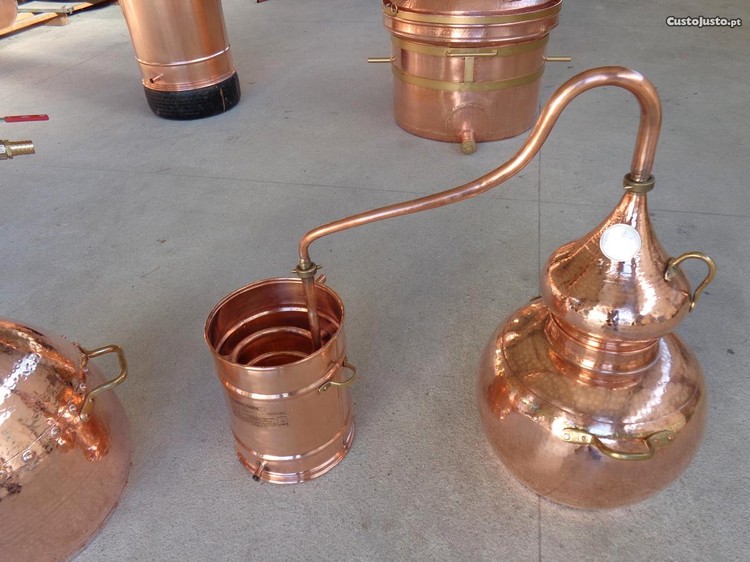 Alambique de 50 litros novo com termómetro todo fabricado em cobre martelado a mão . Damos garantia do nosso fabrico