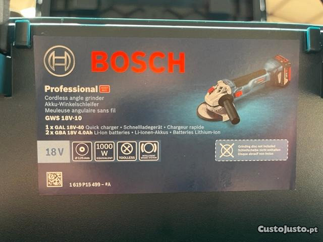 Preço: 407 €Rebarbadora Bosch GWS 18V-10 a Bateria com Carregador e Bateria Extra
