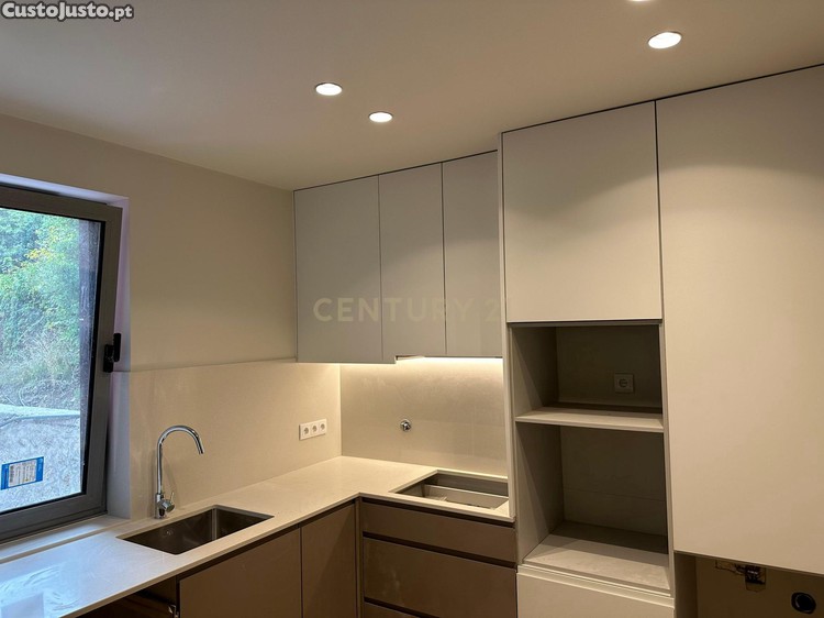 - **Conforto e qualidade**: Acabamentos de alta qualidade, como soalho laminado em carvalho, tetos falsos com iluminação embutida e carpintarias pintadas em branco, que conferem elegância e sofisticação;
