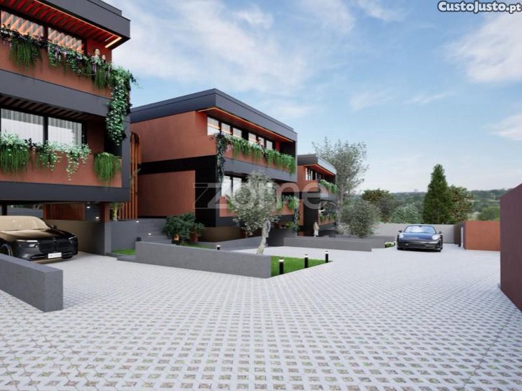 Cada imóvel conta com 2 lugares de garagem e arrumos, e cerca de 140m2 interiores, distribuídos da seguinte forma:
