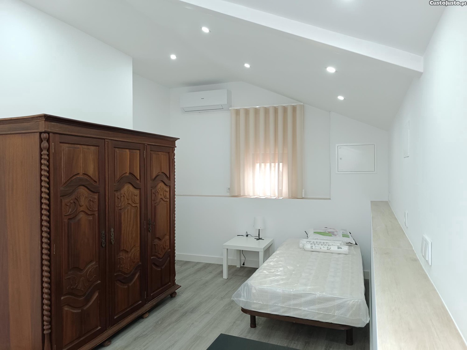 Quartos individuais com colchão novo, roupeiro três portas e espelho, ar condicionado reversível quente / frio, caixilharia vidro duplo e isolamento térmico eficiente, estores elétricos, secretária, cadeira e mesinha de cabeceira, áreas confortáveis de 10 a 14 m2.