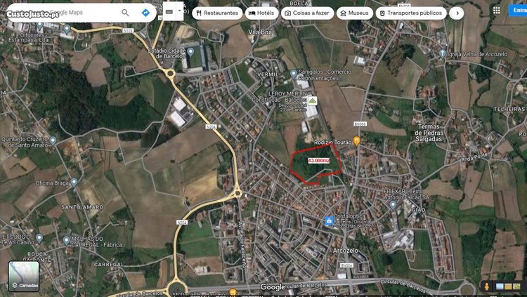 - Área total aproximadamente de 43.000m2, sendo que está no âmbito do Plano Director Municipal (PDM) actual em vigor, o terreno está totalmente integrado em solo urbanizável (Espaço Central Nível III) construção em propriedade horizontal de cave e + 4 andares, e em UI ( construção de interesse público) que poderá ser também para indústria em ambas situações, está sendo alterado para mais 2 andares, e a zona Ui está alterando para Espaços actividades económicas Nivel III .