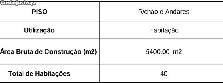 terreno para construção, para edifício habitacional, para 40 frações, das tipologias T1 , T2 e T3, para o seguemento de mercado que entenda mas adequado ao local e ou a carteira de clientes da v/ empresa.
