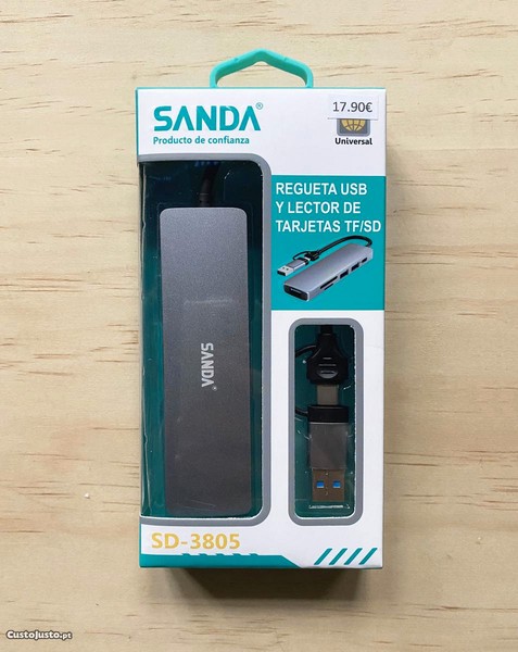 Preço: 17 €Adaptador / HUB USB-C e USB com leitor de cartão TF e SD + 3 portas USB + 1 porta USB-C