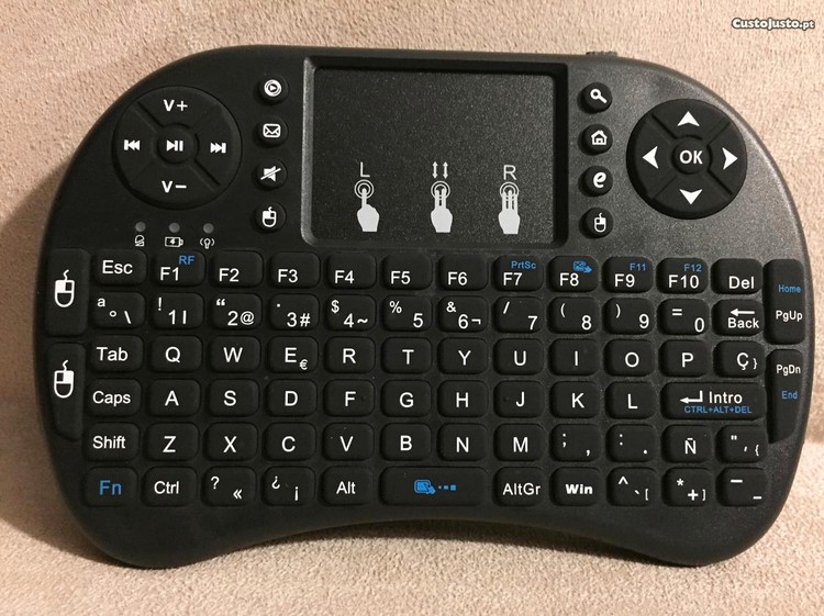 Possui um teclado QWERTY completo, com setas direccionais, teclados de atalho, controles multimédia, entre muitos outros! Possui também um touchpad embutido de fácil uso, permitindo uma navegação acessível e descomplicada! Graças ao facto de ser wireless, permite que controle o dispositivo do conforto do seu sofá/cama ou do seu local preferido até 10 metros de distância, garantido uma maior comodidade.