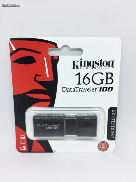 Preço: 13 €Pen USB Kingston 16GB - Usb 3.1/3.0/2.0 (DT100G3)