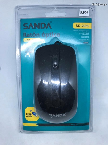 Rato óptico com conexão USB - 1600DPI - Novo / Selado (9,90 Euros)