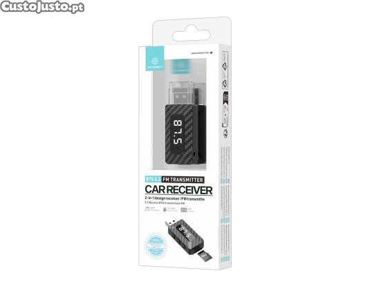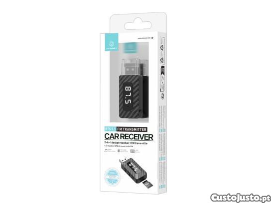 Receptor/transmissor FM BTS 5.3 com design 2 em 1. Suporte a leitura de cartão TF, fonte de alimentação USB, saída AUX de 3,5 mm