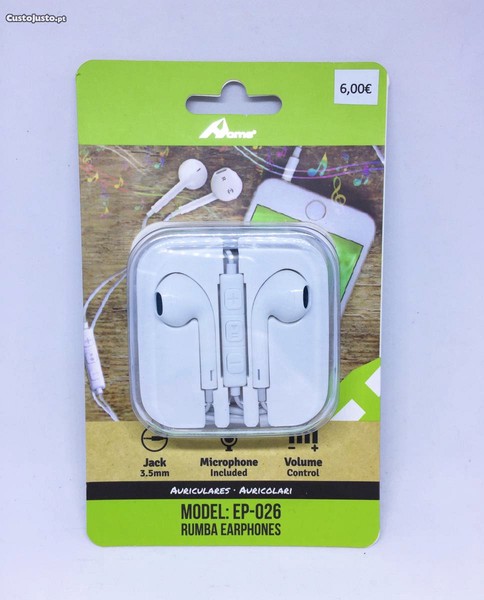 Auriculares com fio com microfone / Earphones Jack 3.5mm - Auriculares estilo Earpods