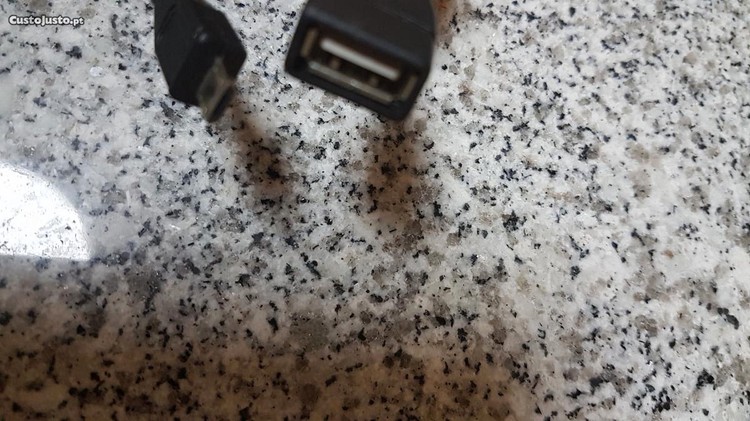 Cabo de ligação mini-USB para USB. Também tenho micro-USB para USB