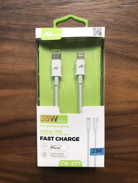 Preço: 13 €Cabo USB-C (Type-C) para lightning - 35W - 2 metros de comprimento