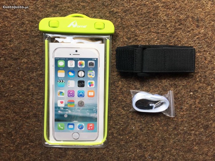 Esta capa/bolsa impermeável é à prova de água, para que possa colocar o seu smartphone no seu interior, fechar, e poder levar o telemóvel para a água consigo.