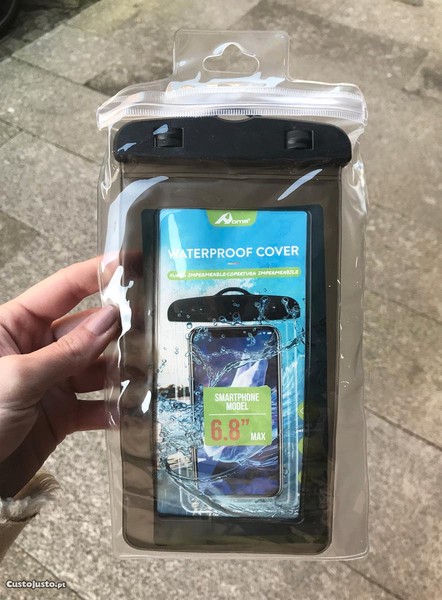 Esta capa/bolsa impermeável é à prova de água, para que possa colocar o seu smartphone no seu interior, fechar, e poder levar o telemóvel para a água consigo.