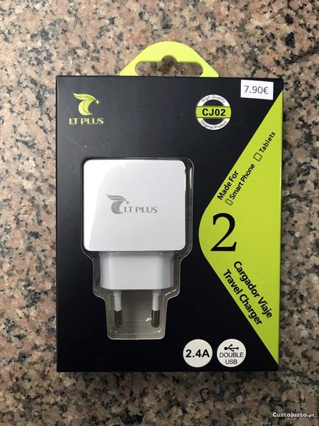 Preço: 7 €Carregador de parede com 2 USB (1 Amp / 2.4Amp)