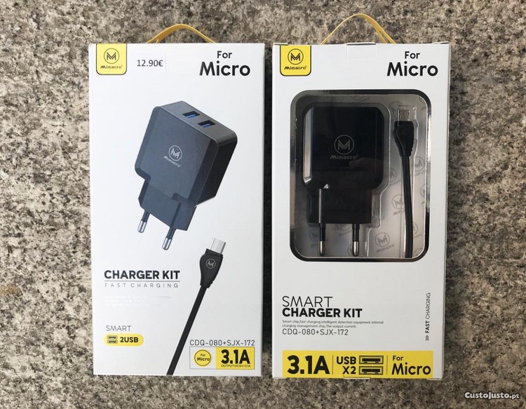 Preço: 12 €Carregador fast charging 3.1A com cabo Micro USB
