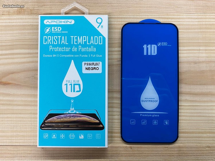 Preço: 8 €Película de vidro temperado completa (Full Screen) para iPhone 15 Plus - Cobertura total do ecrã