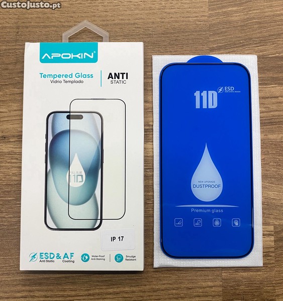 Preço: 8 €Película de vidro temperado completa (Full Screen) para iPhone 17 - Cobertura total do ecrã