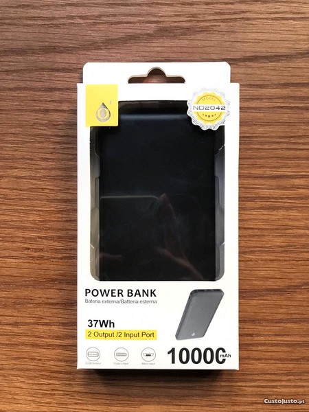 Preço: 20 €Power Bank de 10000mAh com 2 entradas (Type-C + Micro USB) e 2 saídas USB
