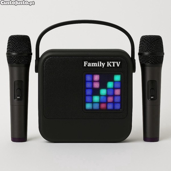 Preço: 60 €Caixa de Som com 2 Microfones Sem Fio | Karaokê Portátil Bluetooth