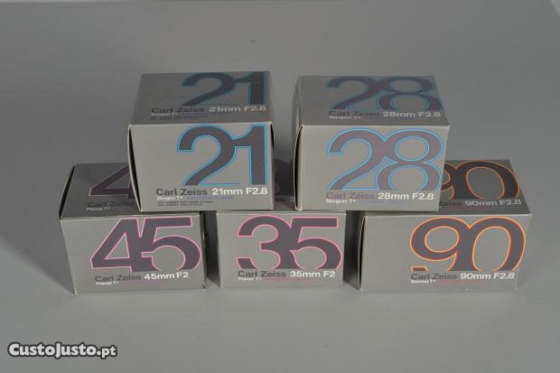 vendo,5 lentes Contax tipo G, nunca usadas,sem riscos,sem pó e sem fungos,vendo todas juntas por 2850EUR em separado tem o seguinte preço: 45mm f2 -395EUR, 35mm f2 -575EUR, 28mm f2.8 -695EUR, 21mm f2.8 com visor angular -975EUR, 90mm f2.8 -595EUR,as fotos apresentadas foram tiradas para este anúncio,posso mostrar e entregar em Braga,não respondo por e-mail/sms,só por telefone