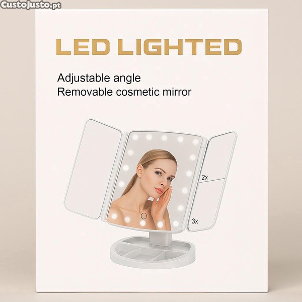 Preço: 28 €O Espelho LED Lighted Tri-Fold é perfeito para maquiagem e cuidados pessoais