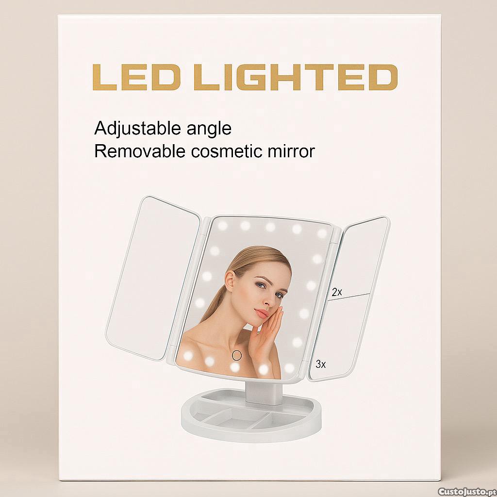 O Espelho LED Lighted Tri-Fold é perfeito para maquiagem e cuidados pessoais