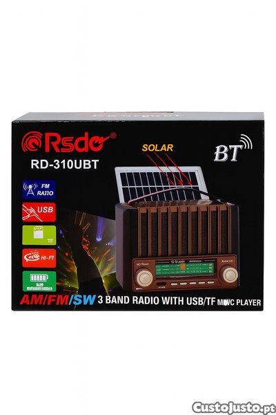 Preço: 12 €Rádio Multibanda Rsdo RD-309UBT - Portátil, Recarregável e com Múltiplas Funções