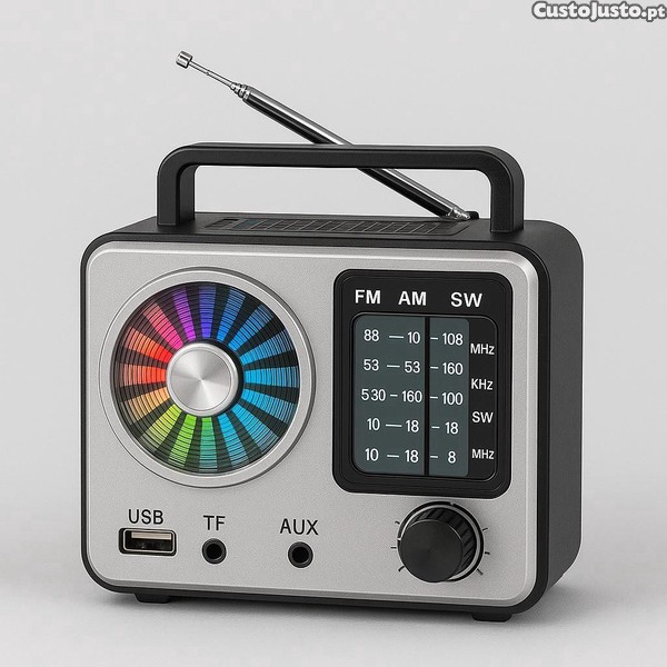 Preço: 19 €Rádio Portátil COLON RX-1115D com Bluetooth, TWS, Solar e LED RGB