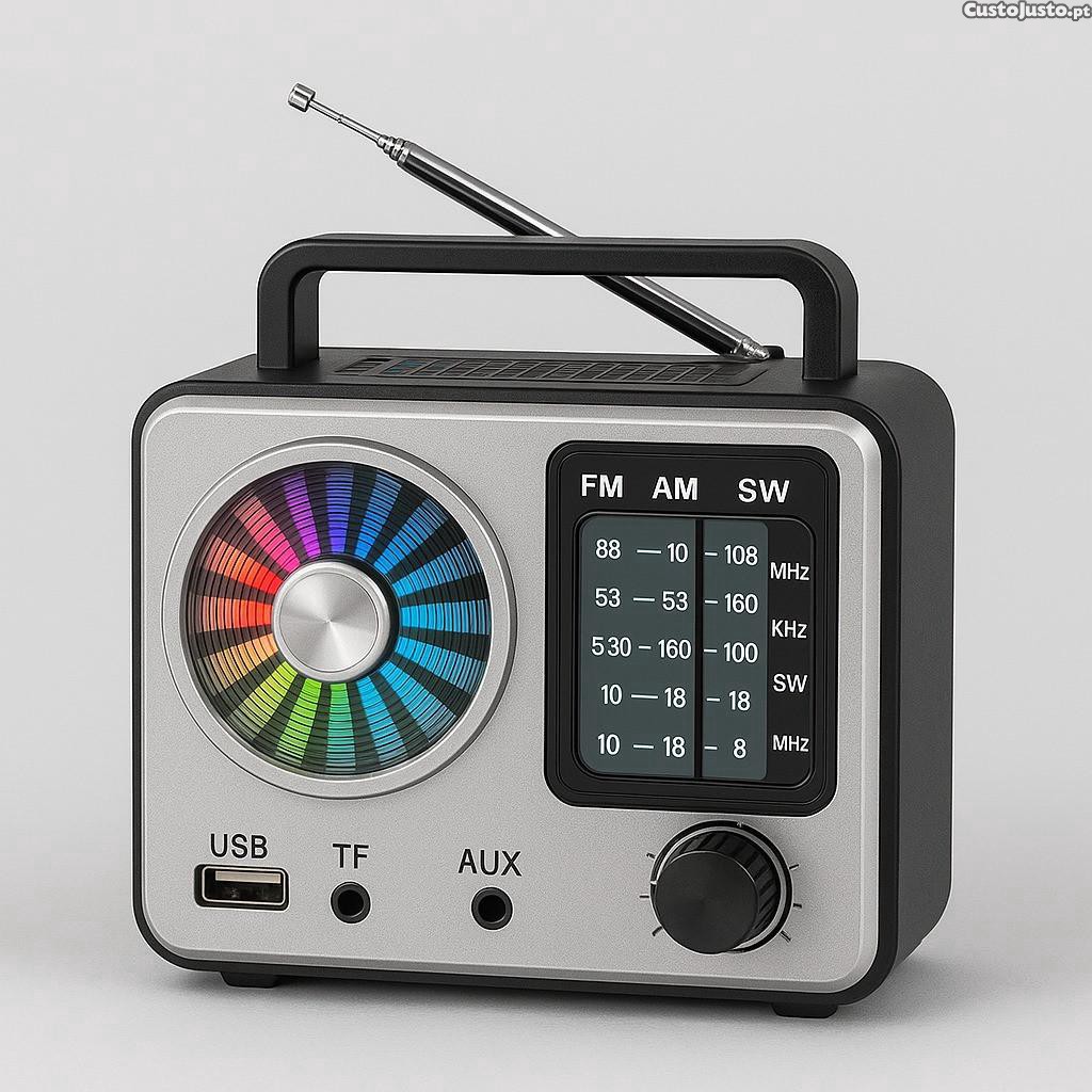 Rádio Portátil COLON RX-1115D com Bluetooth, TWS, Solar e LED RGB