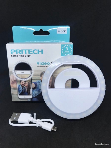 Preço: 6 €Selfie Ring Light para telemóvel com 3 níveis de luz LED