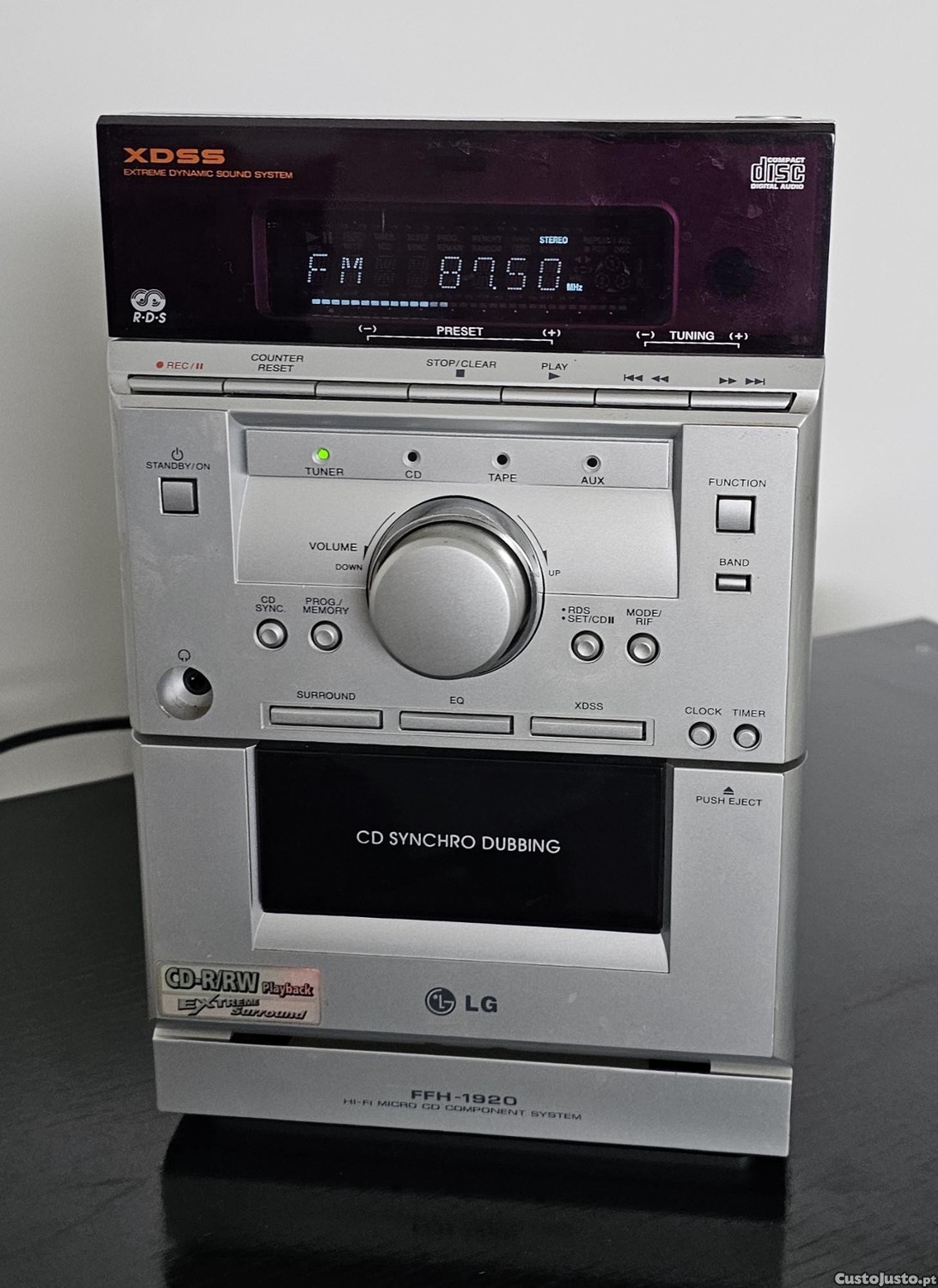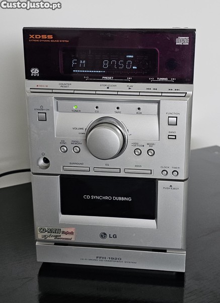 Preço: 37 €Sistema de som LG funcional, com rádio, CD, comando, duas colunas e livro de instruções