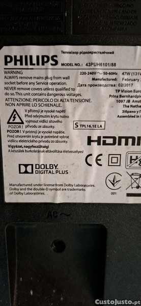 Preço: 20 €Smartv philips 43puh6101/88 ecrã partido