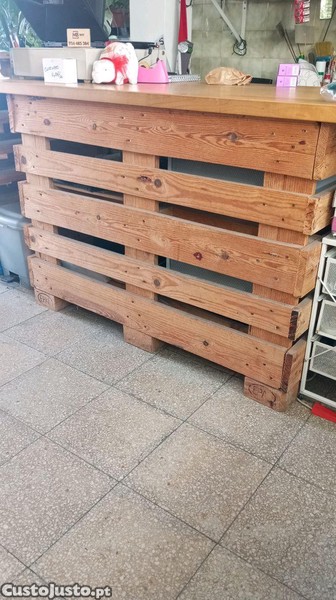 Balcão em madeira, robusto e resistente. Frente e laterais em paletes