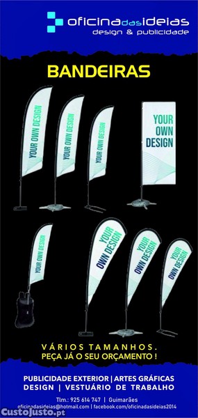 Bandeiras publicitárias. Vários formatos e tamanhos. Contacte para mais informações.