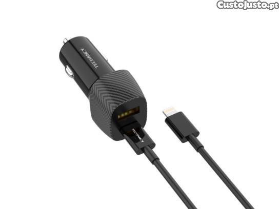 Carregador De Carro 48W,Usb+Usb C ,Com Cabo Usb-C Para Lightning Preto