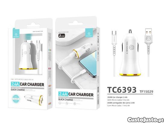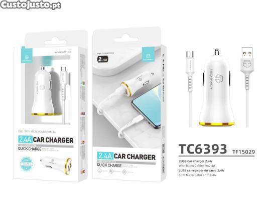 Preço: 5 €Carregador De Carro Com Cabo Micro Usb 2.4A 1M 2Usb Branco/Dourado