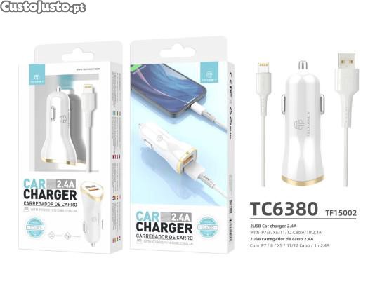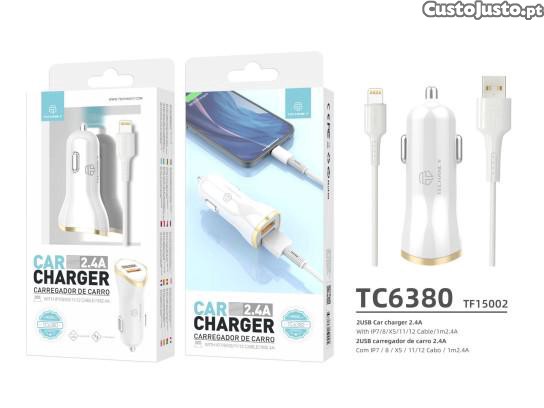 Carregador De Carro Com Cabo Para Ip 6/7/8 / X / Xs 2.4A 1M 2Usb Branco