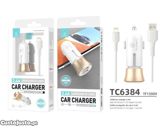 Carregador De Carro Com Cabo Para Ip 6/7/8 / X / Xs 2.4A 1M 2Usb Branco/Dourado