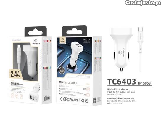 Preço: 5 €Carregador De Carro Para Micro Usb 2Usb Basico 2.4A Branco