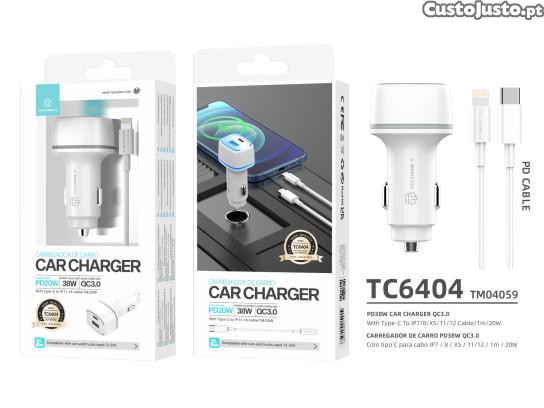 Preço: 11 €Carregador De Carro Pd20W + Qc3.018W 38 W Branca + Cabo Typec-Lightning Pd