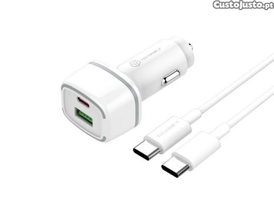 Preço: 10 €Carregador De Carro Pd20W + Qc3.018W 38 W Branca + Cabo Typec-Typec Pd