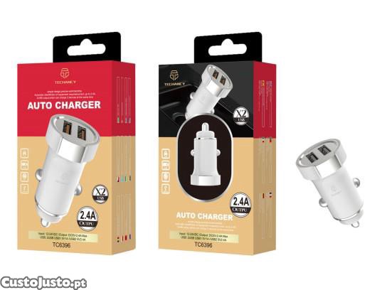 Carregador De Carro Sem Cabo 2.4A 2Usb Branco/Prata
