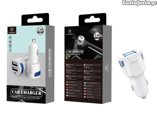 Carregador De Carro Sem Cabo 2.4A 2Usb Azul
