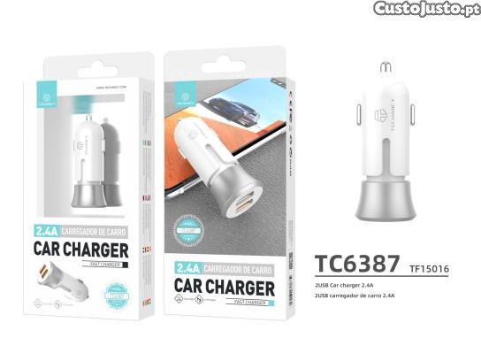 Preço: 5 €Carregador De Carro Sem Cabo 2.4A 2Usb Branco/Prata