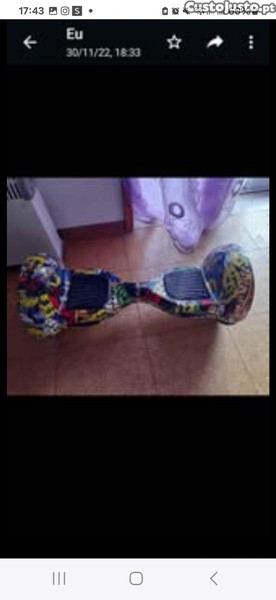 Hoverboard totalmente funcionalSe realmente tiver interesse, mande me mensagem alguns riscos na parte inferior, tal como pode ser comprovado nas fotos acimaNegócio apenas feito em mão, Braga,próximo do Braga Qualquer tipo de questão não hesite em contactar contacte 914 119 953