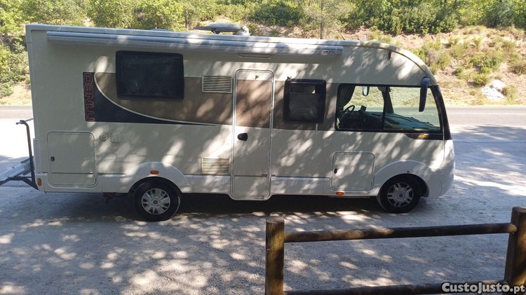 veículo muito agradável, foi conduzido muito pouco, também equipado com painel solar, ar condicionado na cabine, rede mosquiteira na porta, radio, direção assistida, toldo, arrumos no chassis, duas garrafas de gaz, frigorífico grande, lavatório e espelho no quarto, quarto privativo com cama de casal e cama casal por cima do condutor, 4 pessoas deitadas e 4 sentadas.
